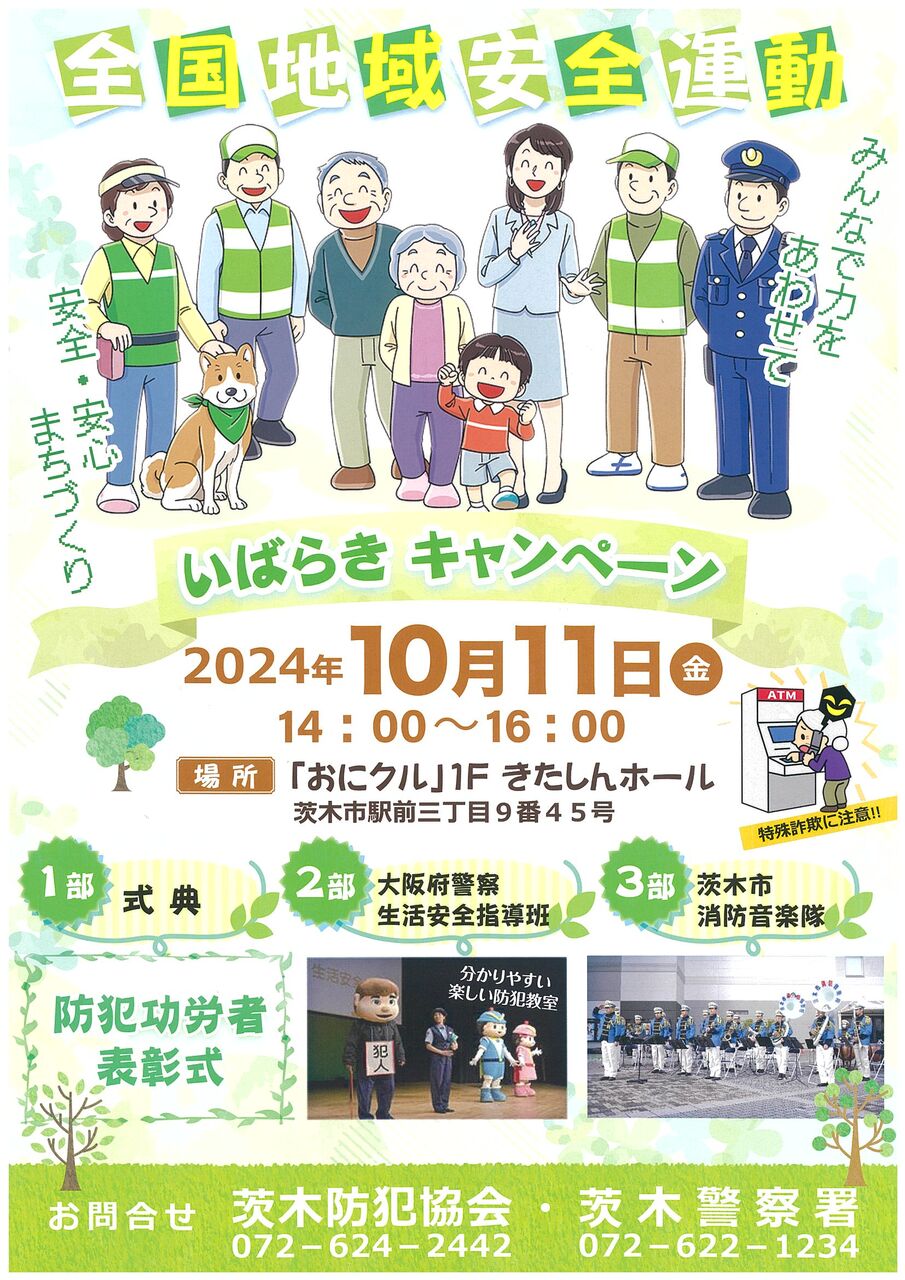 全国地域安全運動 2024年09月25日 2024年10月11日~10月20日の間「全国地域安全運動」が実施されます。それに伴い、【いばらきキャンペーン】を行います。ご参加お待ちしております。 < 前の記事次の記事 > コメント コメントフォーム 名前 コメント 記事の評価 リセット リセット 顔 星 情報を記憶 コメントを投稿する